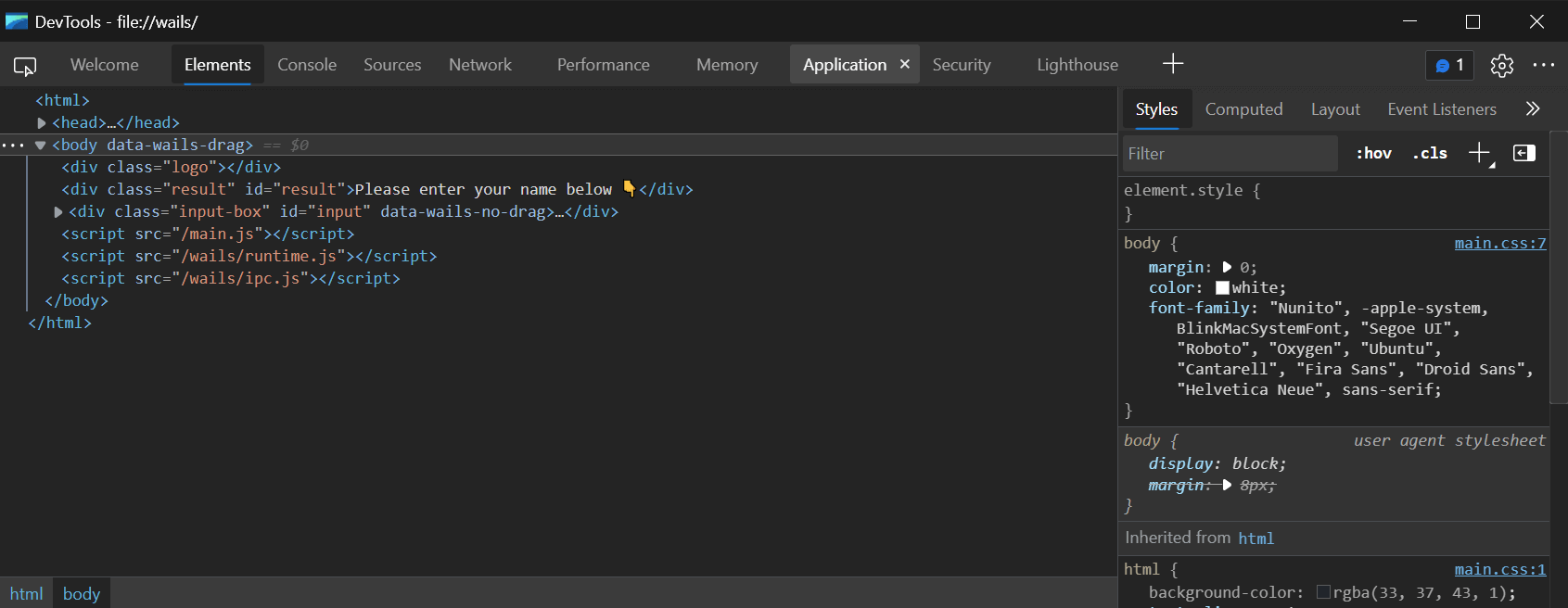 The API to build a Wails application currently consists of 2 parts: